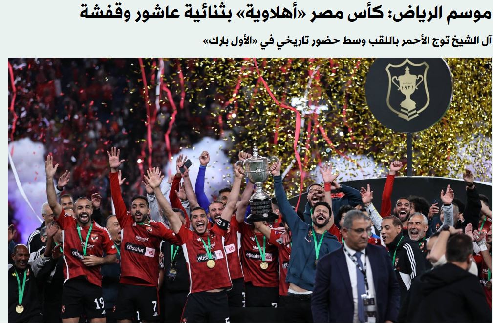 وتابعت أن الرياض أهدت الأفضلية التاريخية للأهلي، بعدما توج الأحمر بلقب كأس مصر للمرة العاشرة على حساب الزمالك.