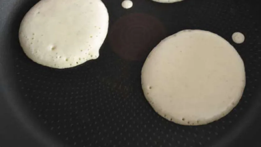- اسكبي كمية قليلة من العجينة في المقلاة بحيث تصنع دوائر متوسطة الحجم.