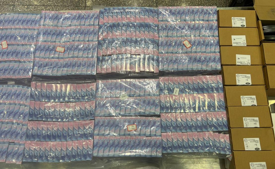 والمحضر الثالث رقم ٢٤ لسنة ٢٠٢٤ ضد راكبة اسيوية حاولت تهريب ١٣٦٣ عبوة مستحضرات تجميل و١٨ عبوة من قطع غيار السيارات بالتسلل وسط المجموعات السياحية، تم الضبط بواسطة كل من أحمد عبد الرشيد مأمور اللجنة الجمركية وتوماس فريد مأمور الجمرك في التفتيش اليدوي ومن ادارة الفحص بالأشعة أحمد شاكر عبد الوهاب مأمور الجمرك شارك في الضبط كل من مصطفي صادق وحاتم الضيف ومحمد شداد مآمير الجمرك واحمد سيد إبراهيم تحت اشراف احمد صبري عطية رئيس القسم.