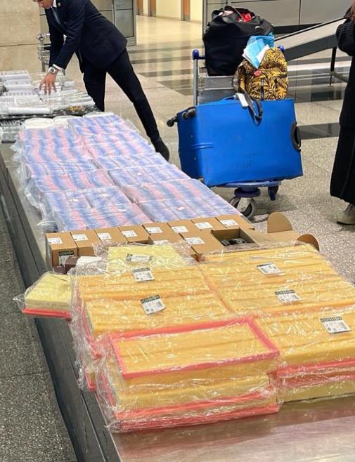 والمحضر الخامس رقم ٢٧ لسنة ٢٠٢٤ ضد راكبة مصرية قادمة علي نفس الرحلة وبحوزتها ٣٨ كيلو جرام من نفس نوعية العاج المذكور، تم الضبط بواسطة سامي نبيل مأمور الجمرك في التفتيش اليدوي ونفس فريق الضبط في المحضر السابق تحت اشراف تامر عادل مدير الحركة.