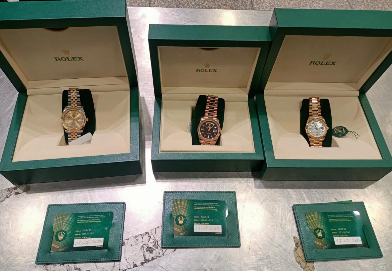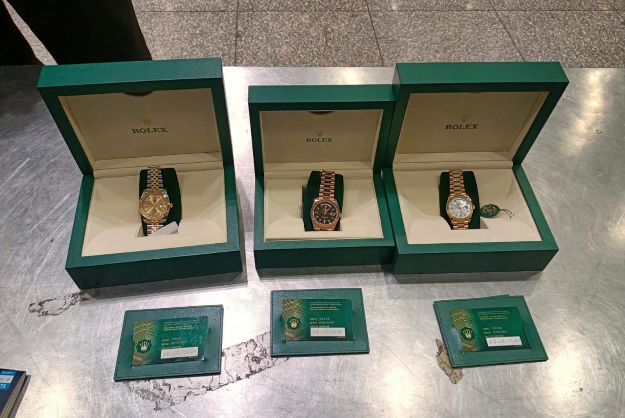 والمحضر الثالث رقم ٢٣ لسنة ٢٠٢٤ ضد راكب عربي قادم من دبي أيضا علي الخطوط الإماراتية حاول تهريب ثلاث ساعات حريمي ورجالي ماركة رولكس باثمان باهظة، تم الضبط بواسطة كل من محمد نبيل طلب مأمور اللجنة الجمركية واحمد محمد فتحي مأمور الجمرك في التفتيش اليدوي ومن ادارة الفحص بالأشعة علي الطاهر ومحمد موافي رئيس القسم في حضور طارق فرج مدير الإدارة بالامن الجمركي وتامر عادل رئيس القسم تحت اشراف صبري حسانين مدير الحركة.