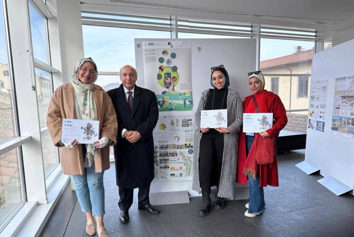 وأوضح أن الطلاب الفائزين بالجائزة الأولى قد نافسوا 18 مجموعة تضم 72 طالبا وطالبة ممثلين لدول عربية وأوروبية من إيطاليا، وإسبانيا، وتركيا، والأردن، والمغرب، وتونس ومصر، مشيرًا إلى أن لجنة التحكيم قامت بتقييم المشروعات المشاركة بنظام التصويت من جميع الحضور (voting)، وبمشاركة 180 من الأساتذة، وأساتذة مشاركين، وأساتذة مساعدين، وباحثين وطلاب دكتوراه وماجستير يمثلون 23 جامعة أوروبية وعربية، وخبراء من الصناعة ورئيس جمعية المعماريين الإيطاليين.