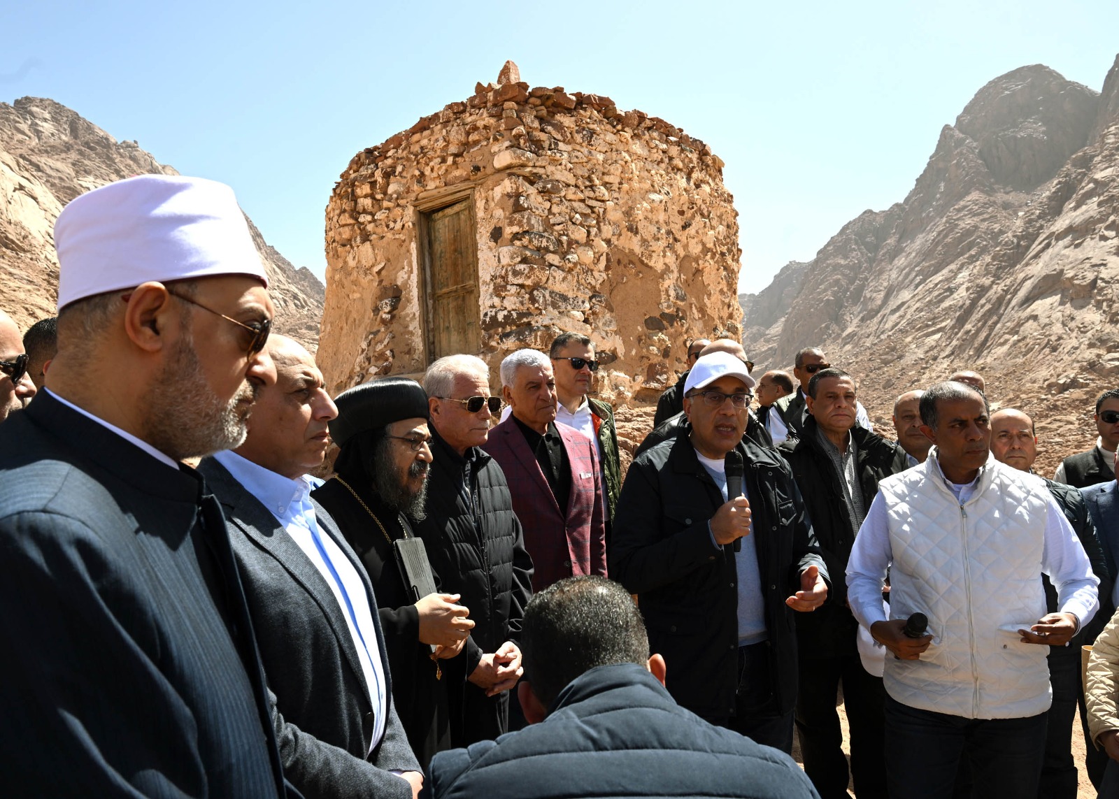 وقال الدكتور مصطفى مدبولي: اخترنا في هذا اليوم وقبل بداية شهر رمضان الكريم بيوم واحد، أن نزور واحدة من أطهر بقاع الأرض وأكثرها قُدسية في الأديان السماوية الثلاثة، وهي منطقة طور سيناء، والتي شهدت تجلي الله على هذه الأرض لسيدنا موسى، وهي القصة الأشهر الموجودة بجميع الكتب السماوية، حيث تتفق كل الديانات بأنها النقطة الوحيدة التي تجلى الله فيها بوجهه الكريم على هذه الأرض.