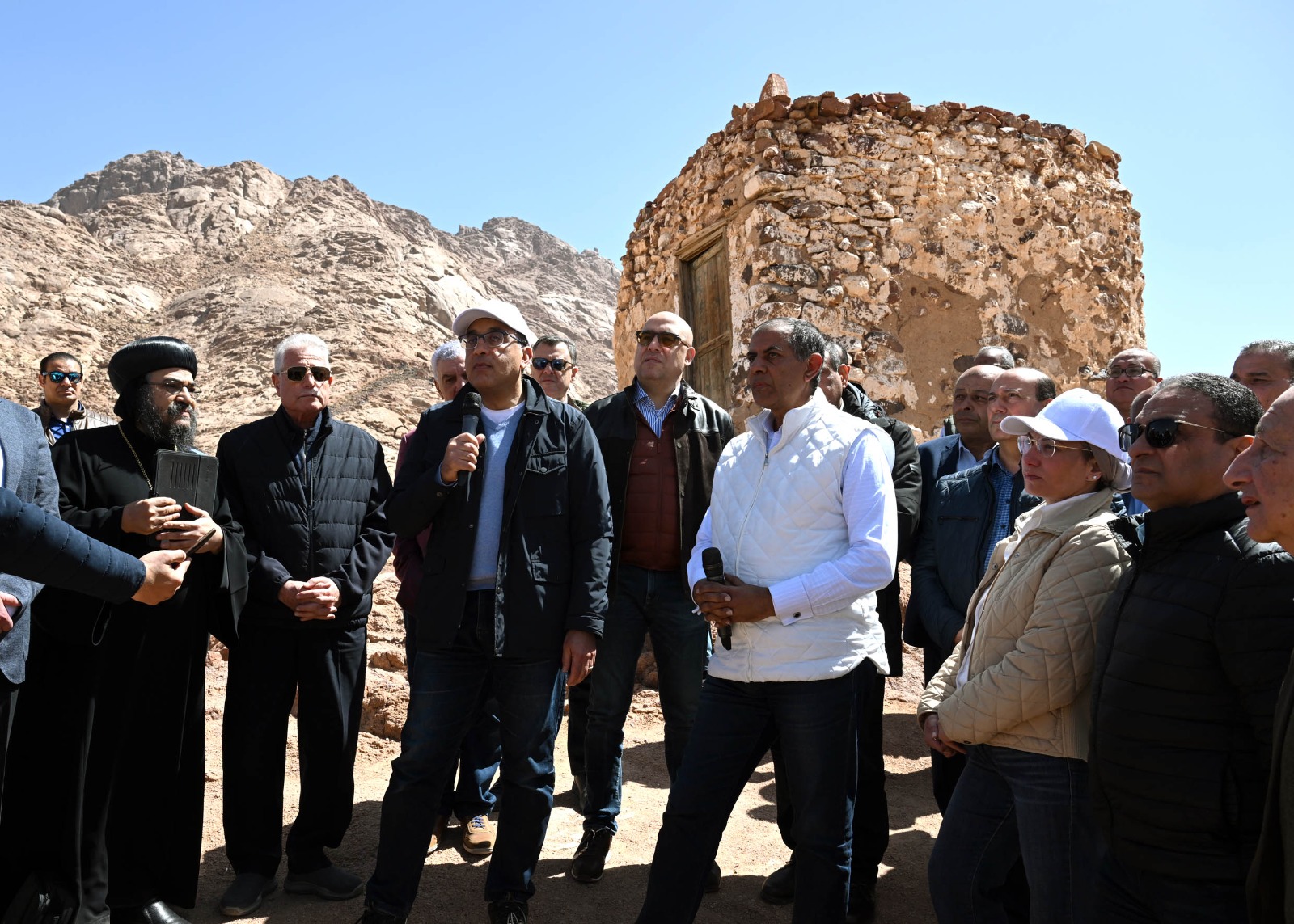 واستمع رئيس الوزراء إلى شرح من الدكتور جمال مصطفى، نائب الأمين العام للمجلس الأعلى للآثار بوزارة السياحة والآثار، حول الأهمية التاريخية والتراثية لمدينة سانت كاترين، وكذا أهمية تبة هارون أو شاهد رؤية هارون المُسجّلة على قائمة الآثار الإسلامية في مصر.