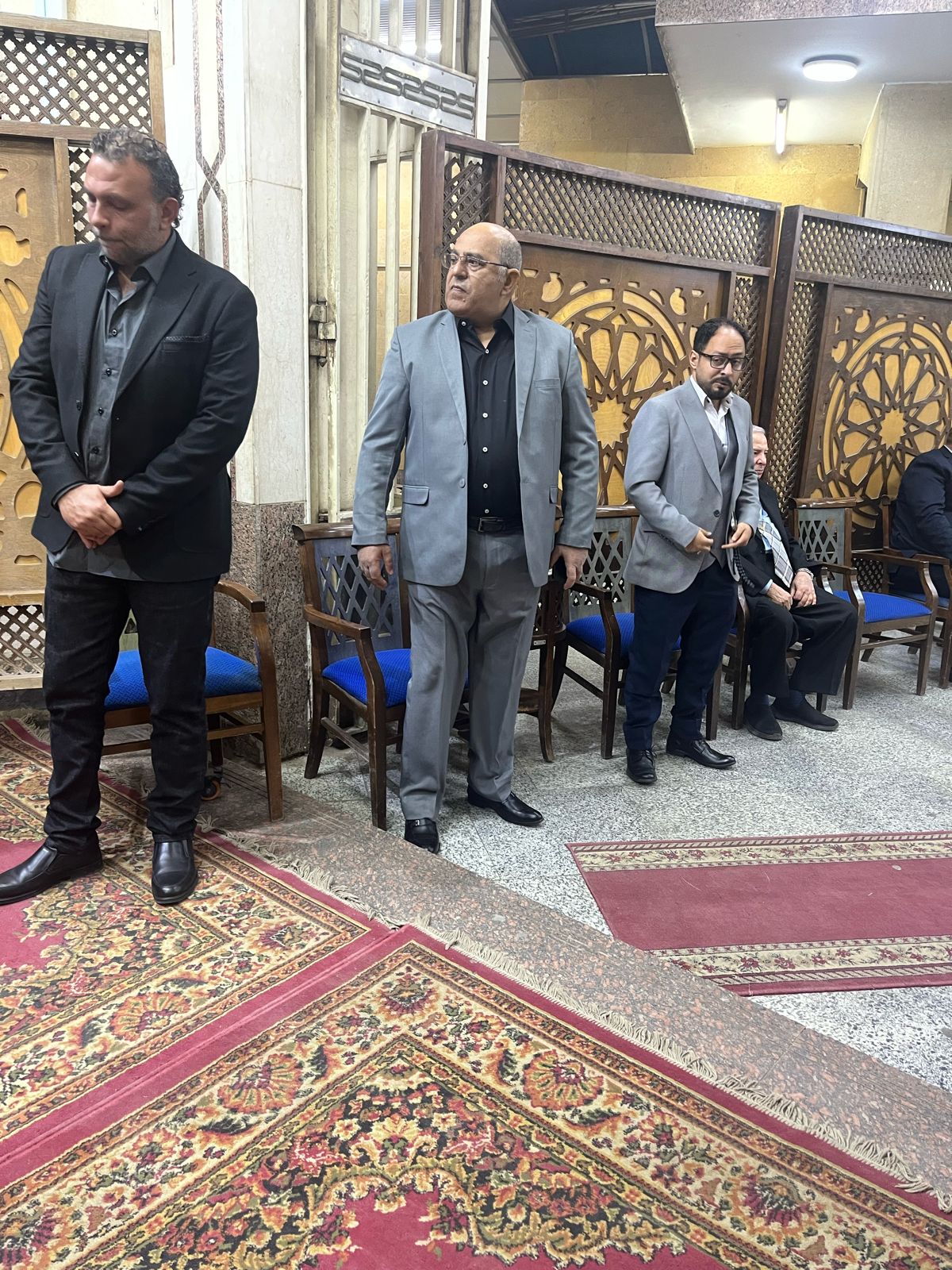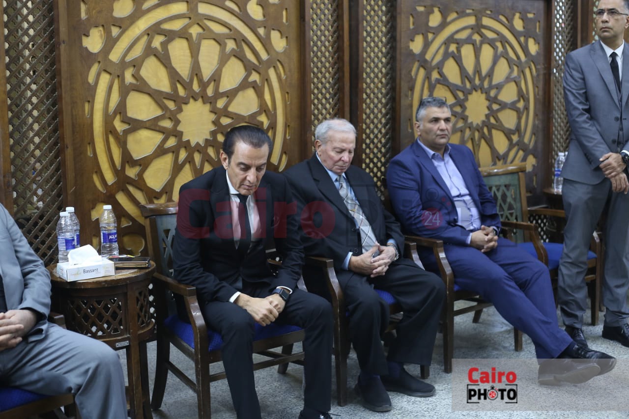 طارق علام يستقبل المعزين في وفاة حماته بمسجد الحامدية الشاذلية