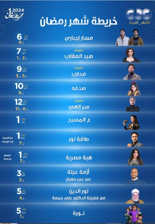 أبرزها صيد العقارب ومحارب.. مواعيد مسلسلات وبرامج رمضان 2024 على قناة cbc