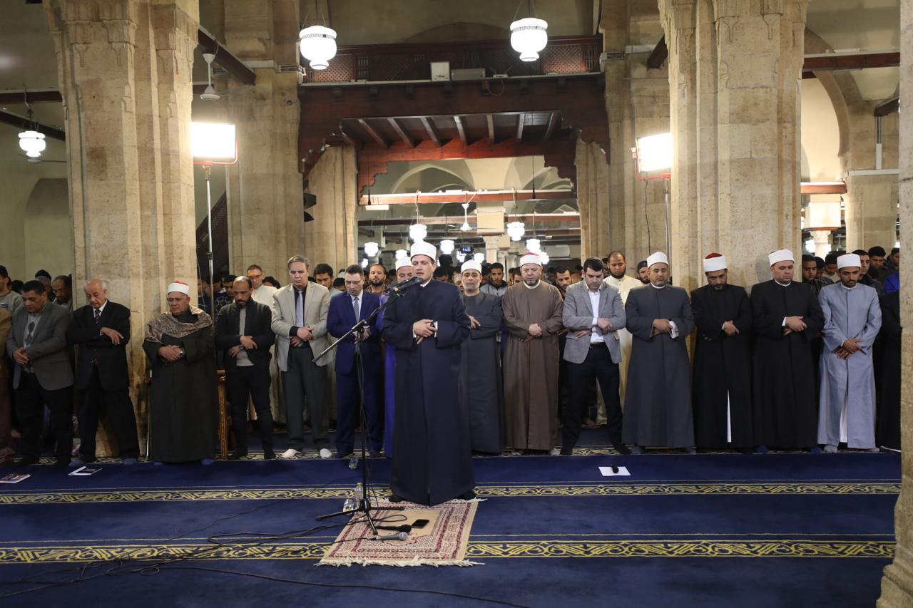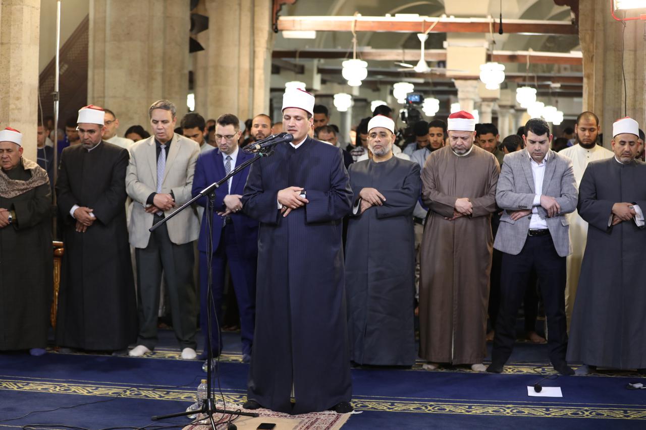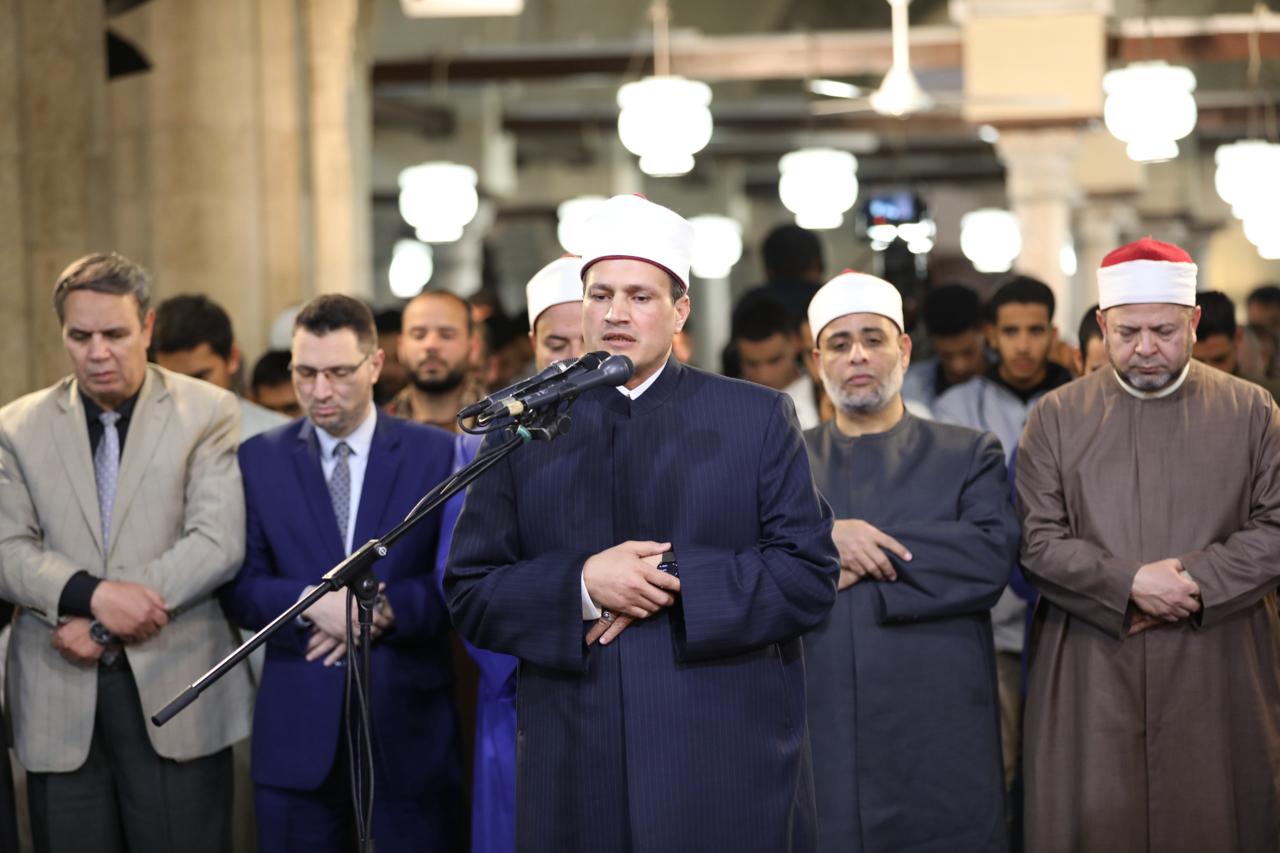 وأمّ المصلين في الجامع الأزهر الليلة في صلاتي العشاء والتراويح، الشيخ محمد إسماعيل العَوَضي، كبير باحثين بمنطقة وعظ الدقهلية، بتلاوة حفص عن عاصم، والدكتور أسامة هاشم الحديدي، مدير عام مركز الأزهر العالمي للفتوى، براوية قالون عن نافع، والشيخ عادل محمود محمد، معلم القرآن كريم بمنطقة المنيا الأزهرية، براوية السوسي عن أبي عمرو البصري، والشيخ عيد كامل عراقي، مدرس القراءات بمعهد قراءات الخازندارة بشبرا، برواية الدوري عن الإمام الكسائي.