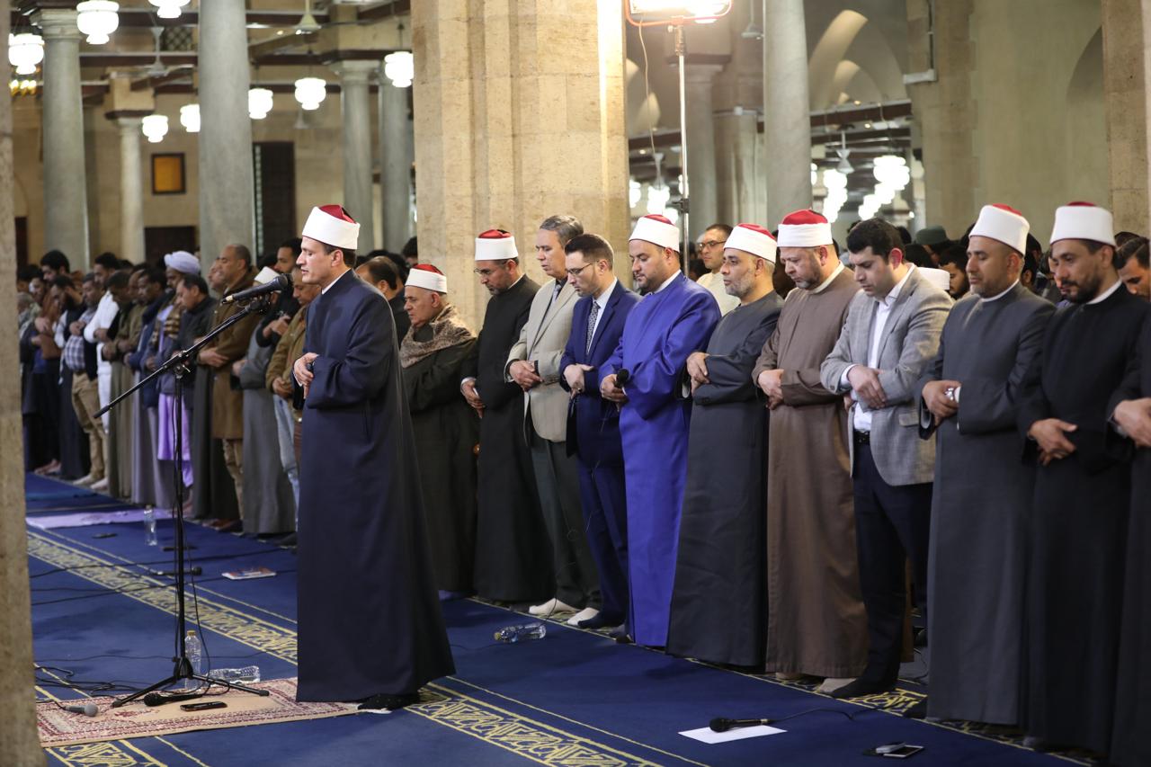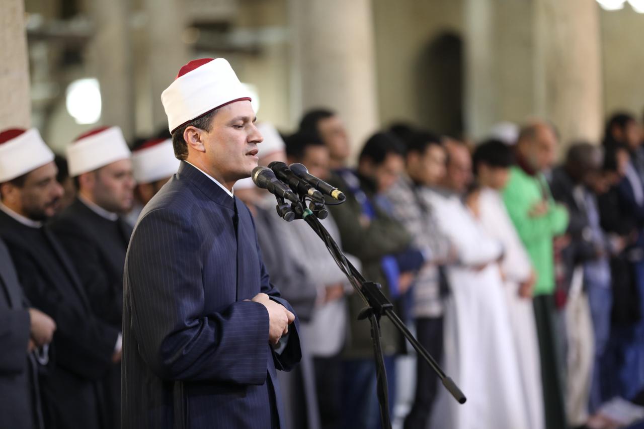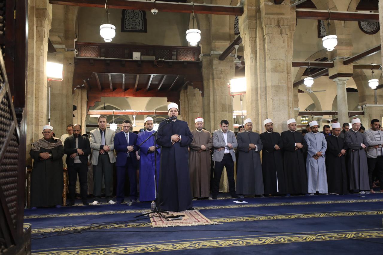 وأمّ المصلين في الجامع الأزهر الليلة في صلاتي العشاء والتراويح، الشيخ محمد إسماعيل العَوَضي، كبير باحثين بمنطقة وعظ الدقهلية، بتلاوة حفص عن عاصم، والدكتور أسامة هاشم الحديدي، مدير عام مركز الأزهر العالمي للفتوى، براوية قالون عن نافع، والشيخ عادل محمود محمد، معلم القرآن كريم بمنطقة المنيا الأزهرية، براوية السوسي عن أبي عمرو البصري، والشيخ عيد كامل عراقي، مدرس القراءات بمعهد قراءات الخازندارة بشبرا، برواية الدوري عن الإمام الكسائي.