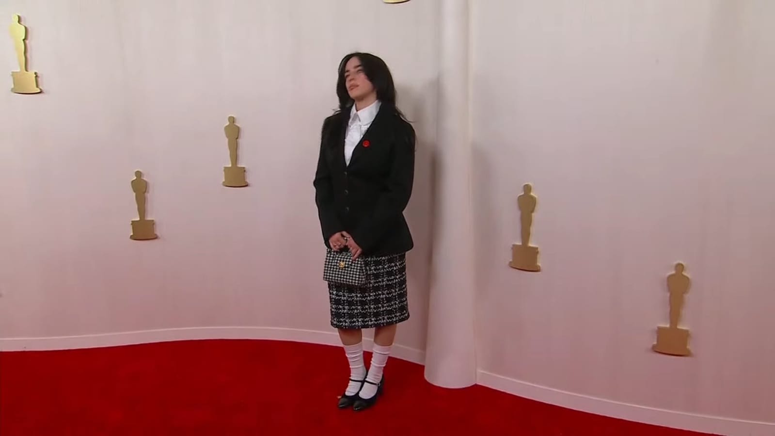 وظهرت المغنية بيلي آيليش، والفنان رامي يوسف، مرتديون الشارة الحمراء، كما ظهر غيرهم مرتدين دبوس بالعلم الفلسطيني، على ريد كاربت حفل توزيع جوائز الأوسكار 2024، وذلك دعمًا للقضية الفلسطينية والمطالبة بوقف إطلاق النار في غزة.
