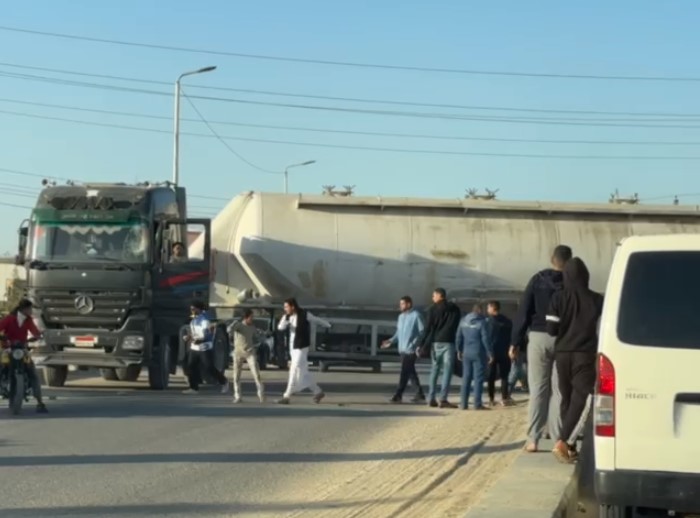 سيارة نقل تتسبب في تكدس مروري بمحور روض الفرج