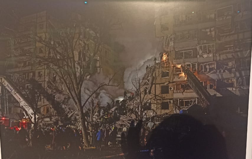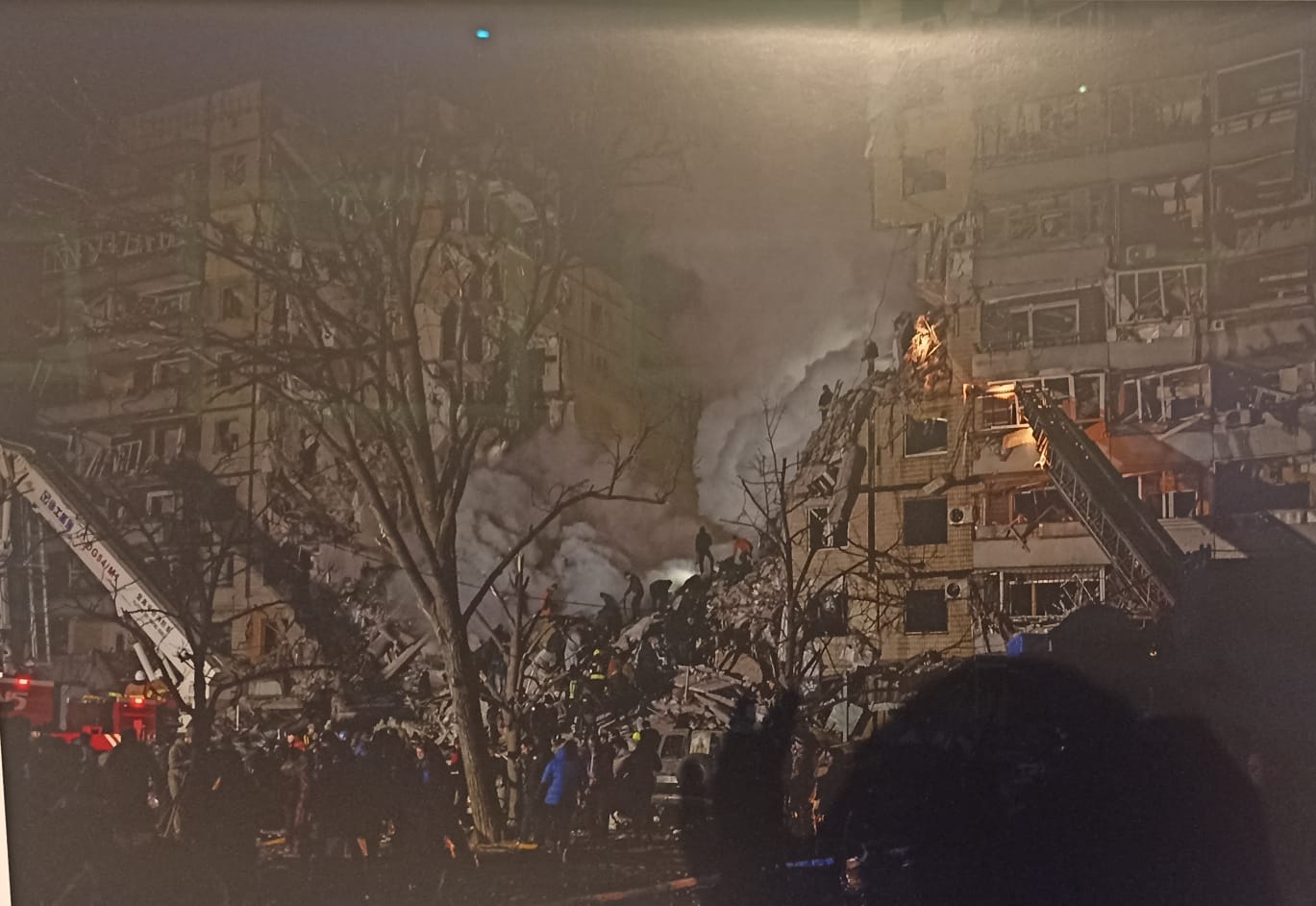 وكانت القوات الروسية قد سيطرت على جزء من سفياتوهيرسك حتى 12 سبتمبر، وتعرض الدير لأضرار فادحة جراء المعارك التي أسفرت عن عودة الجيش الأوكراني وبسط سيطرته على المدينة مجددًا، وكذلك صورة لمبنى سكني كبير في مدينة دنيبرو الأوكرانية يوم السبت 14 يناير 2023 تم قصفه بصاروخ وأشارت الحصيلة الرسمية حتى لحظة التقاط الصورة إلى مقتل 5 أشخاص وإصابة 60 آخرين.