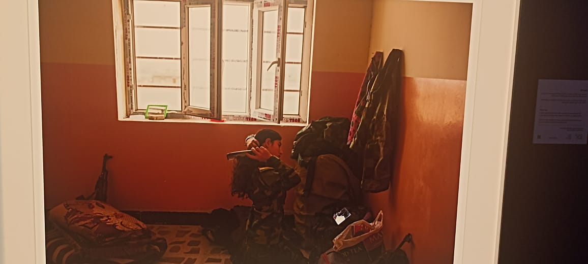من صور نيكول تانغ المشاركة في معرض اكسبوجر صورة لمقاتلين من قوات سوريا الديمقراطية المدعومة من الولايات المتحدة أثناء قيامهم بتفتيش للمنازل واحدًا تلو الآخر في حي غويران، بحثًا عن مقاتلي داعش يوم الإثنين 31 يناير 2022 في الحسكة بسوريا. حيث كانت الإجراءات الأمنية لا تزال مشددة في المنطقة المحيطة بمجمع السجون، حيث وقع هجوم بتاريخ 20 يناير، ويعتقد بأن خلايا التنظيم الإرهابي النائمة ما زالت تزاول أنشطتها في المدينة.