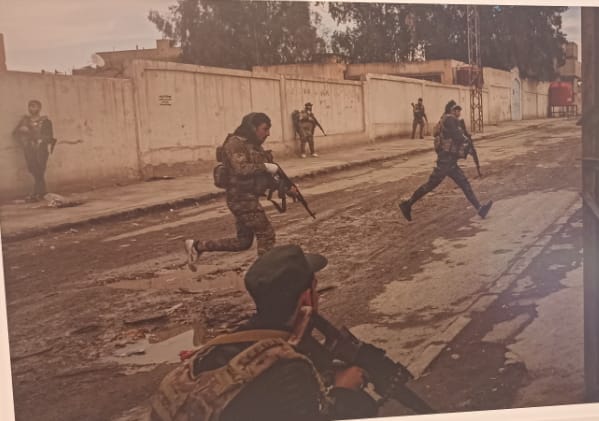 تشير نيكول إلى إحدى الصور وتقول: في ظل حكم داعش لم يكن مسموحًا للأبناء بالذهاب إلى مدارسهم وهذه صور ترصد عودة الحياة الطبيعية بعد زوال داعش، وعودة الأبناء إلى المدارس في لحظة كانت تمثل نوعًا من لحظة السلام ولحظة الأمل بالنسبة لهم.