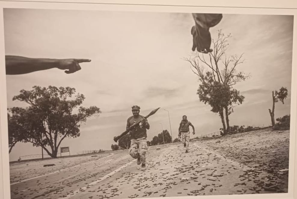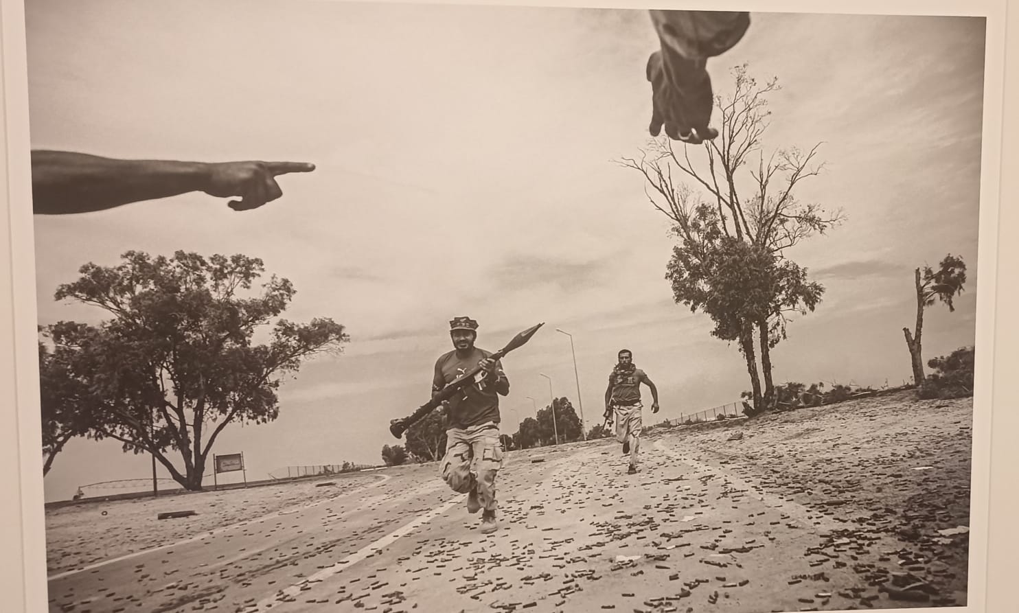 وفي ليبيا توثق نيكول تانغ بعدستها صورة لمتمردين ليبيين يهربون من نيران القناصة أثناء سلسلة من الاشتباكات العنيفة ضد القوات الحكومية في المعركة النهائية للسيطرة على مدينة سرت الليبية، بتاريخ 7 أكتوبر 2011، قبل أيام من القبض على الزعيم الليبي السابق معمر القذافي ومقتله.