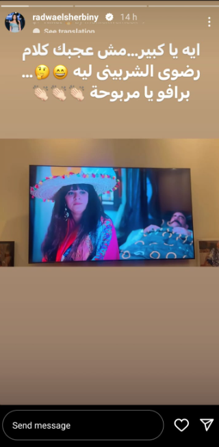 وكتبت رضوى الشربيني منشورًا عبر خاصية ستوري على حسابها الشخصي بموقع تبادل الصور والفيديوهات القصيرة انستجرام، وقالت: إيه يا كبير.. مش عجبك كلام رضوى الشربيني ليه برافو يا مربوحة.