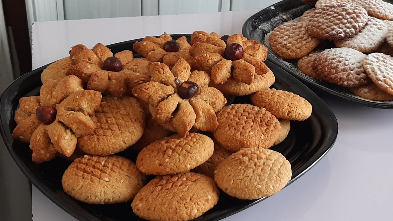 - خلط المكونات الجافة: في وعاء آخر، نخلط دقيق الشوفان والنشا والسمسم وريحة الكحك.