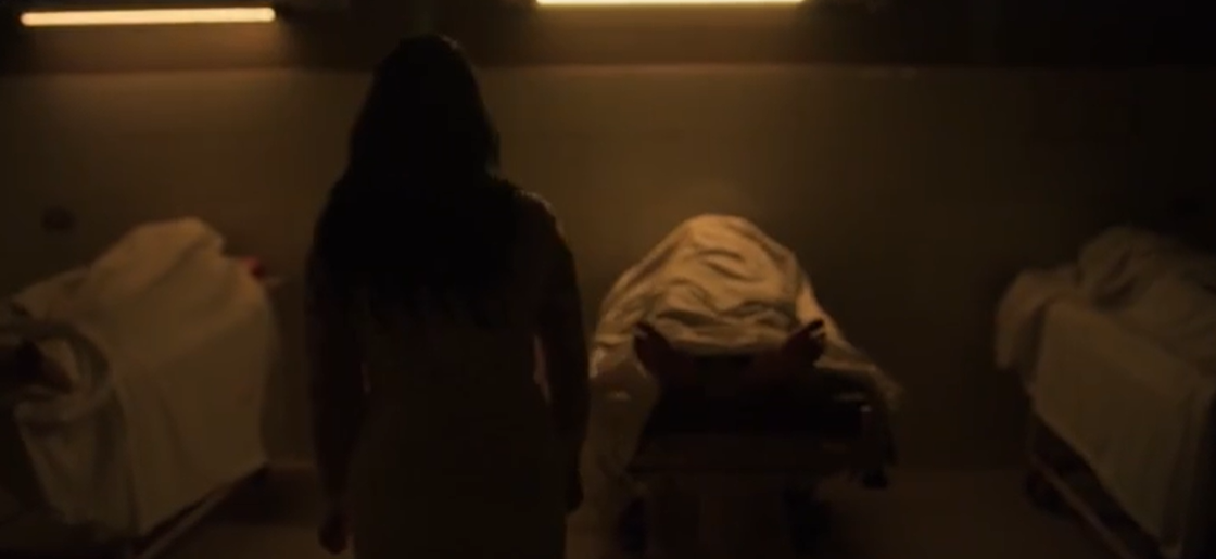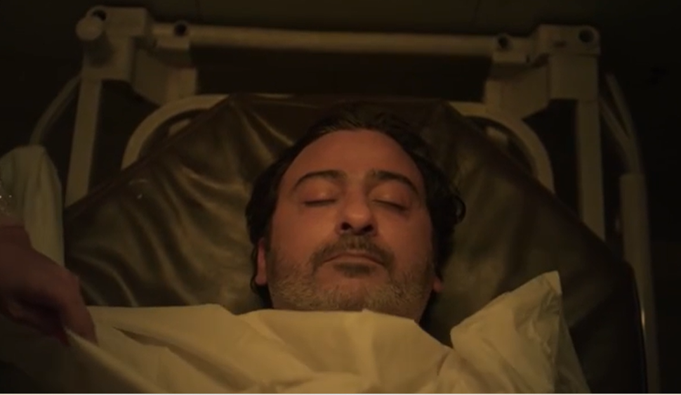 وتدخل سمية الخشاب إلى المشرحة لتودع أحمد عزمي، وفي الخلفية أغنية: