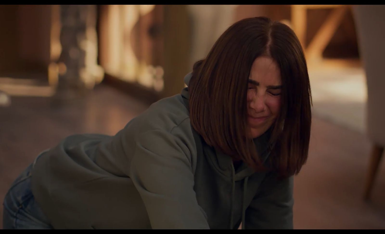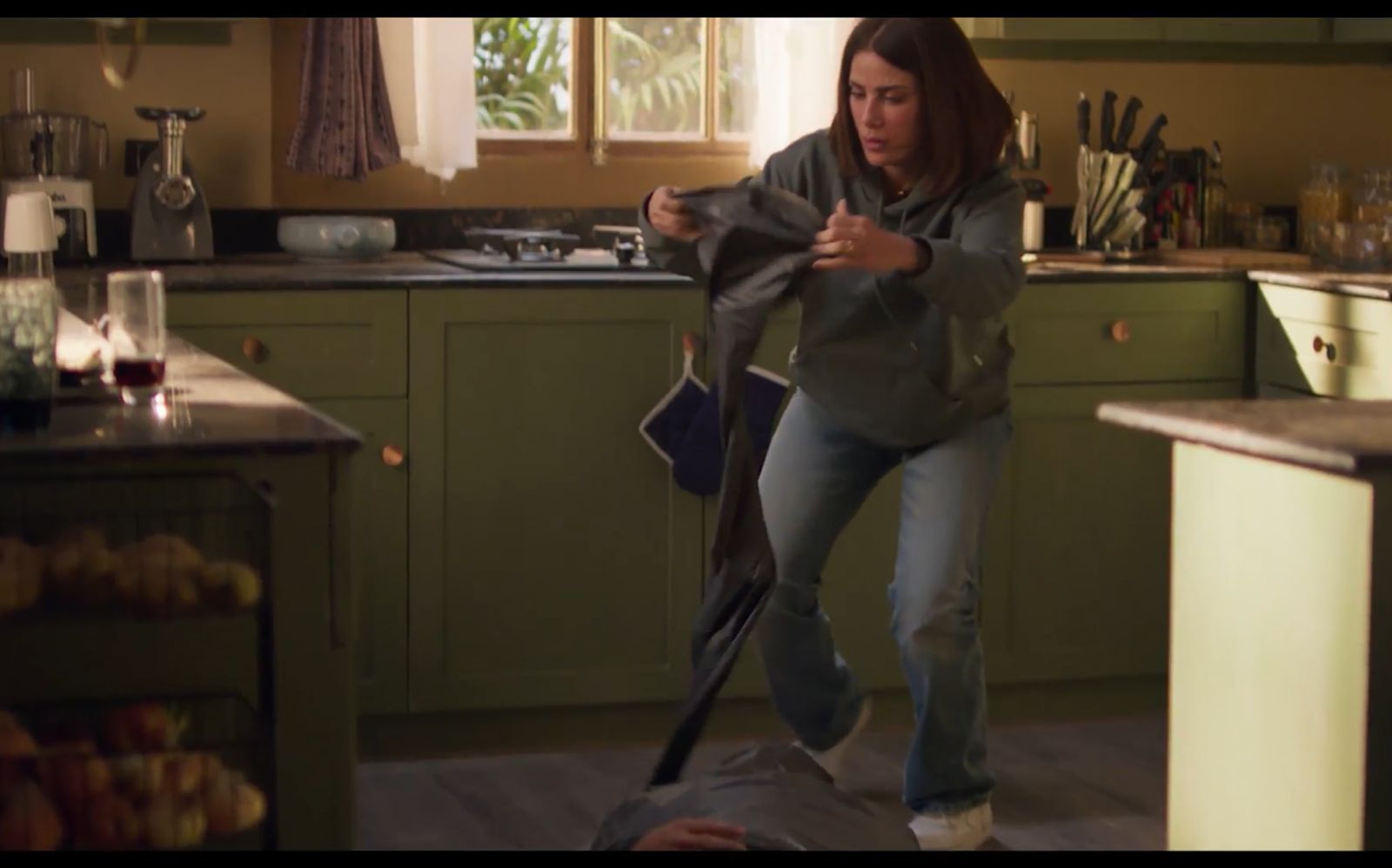 ثم تعود إلى المنزل لتبدأ خطتها في تذويب الجثمان، لتدخل في غيبوبة نوم، وتفوق بعدها وتبدأ في لف جثمانه في شنط سوداء، ثم تضعه في شنطة كبيرة، ليقابلها مصطفى - محمد شاهين- أتناء خروجها بالجثمان، فيظهر عليها ملامح التوتر، ثم تبدأ رحلة البحث عليه مع محمد شاهين.