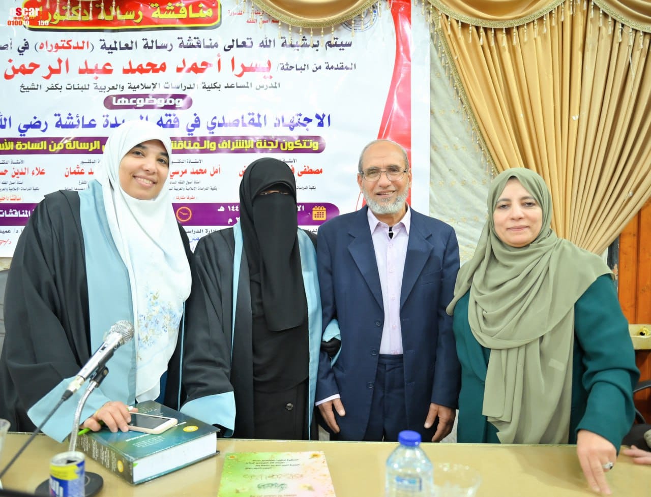 وحضر المناقشة لفيف من أعضاء هيئة التدريس وعلى رأسهم الدكتور عبد الفتاح الدخميسي الأستاذ بكلية الشريعة والقانون بطنطا، والدكتورة فرحانه شويته أستاذ أصول الفقه بكلية الدراسات الإسلامية والعربية للبنات بالمنصورة، والدكتور إبراهيم خليل أستاذ الحديث وعلومه بكلية الدراسات الإسلامية والعربية للبنات بكفرالشيخ والدكتور أحمد الجبالي أستاذ البلاغة والنقد بكلية الدراسات الإسلامية والعربية للبنات بكفرالشيخ.