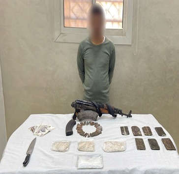 وتمكنت مديرية أمن قنا من ضبط عاطل له معلومات جنائية – مقيم بدائرة مركز شرطة قوص، وبحوزته كمية من مخدرى الحشيش والشابو – بندقية آلية وعدد من الطلقات – ميزان حساس.