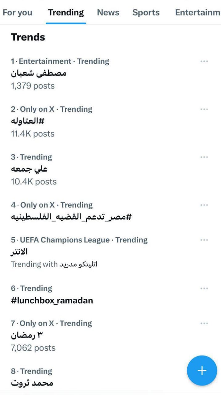 تصدر مسلسل المعلم، للفنان مصطفى شعبان تريند موقع إكس، تويتر سابقا، بعد دقائق من عرض الحلقة الثالثة، والتي شهدت تصاعدًا في الأحداث وتطورا للصراع بين منذر رياحنة ومصطفى شعبان.