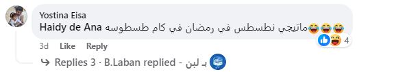 بينما تساءلت أخرى عن مكونات الحلوى الغريبة، فتقول: عبارة عن ايه الطسطوسة عشان نطسطس كلنا ونفرح؟