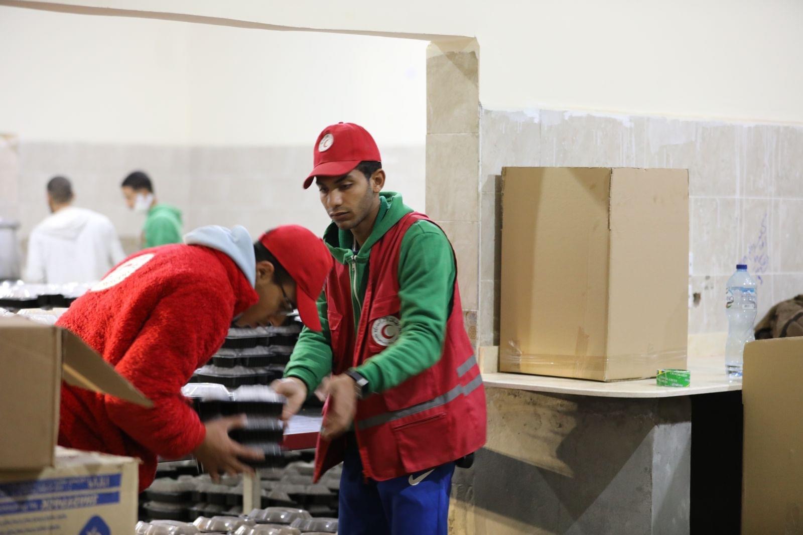 وأعلن الهلال الأحمر أن المتطوعين يواصلون لليوم الرابع من شهر رمضان الكريم، بالتعاون والتنسيق مع الهلال الأحمر الفلسطيني ومن خلال المطبخ الإنساني، إعداد وتجهيز وجبات الإفطار والسحور الطازجة للنازحين بقطاع غزة، ونقلها عبر الجسر البري الرابط بين المطبخ الإنساني والقطاع.