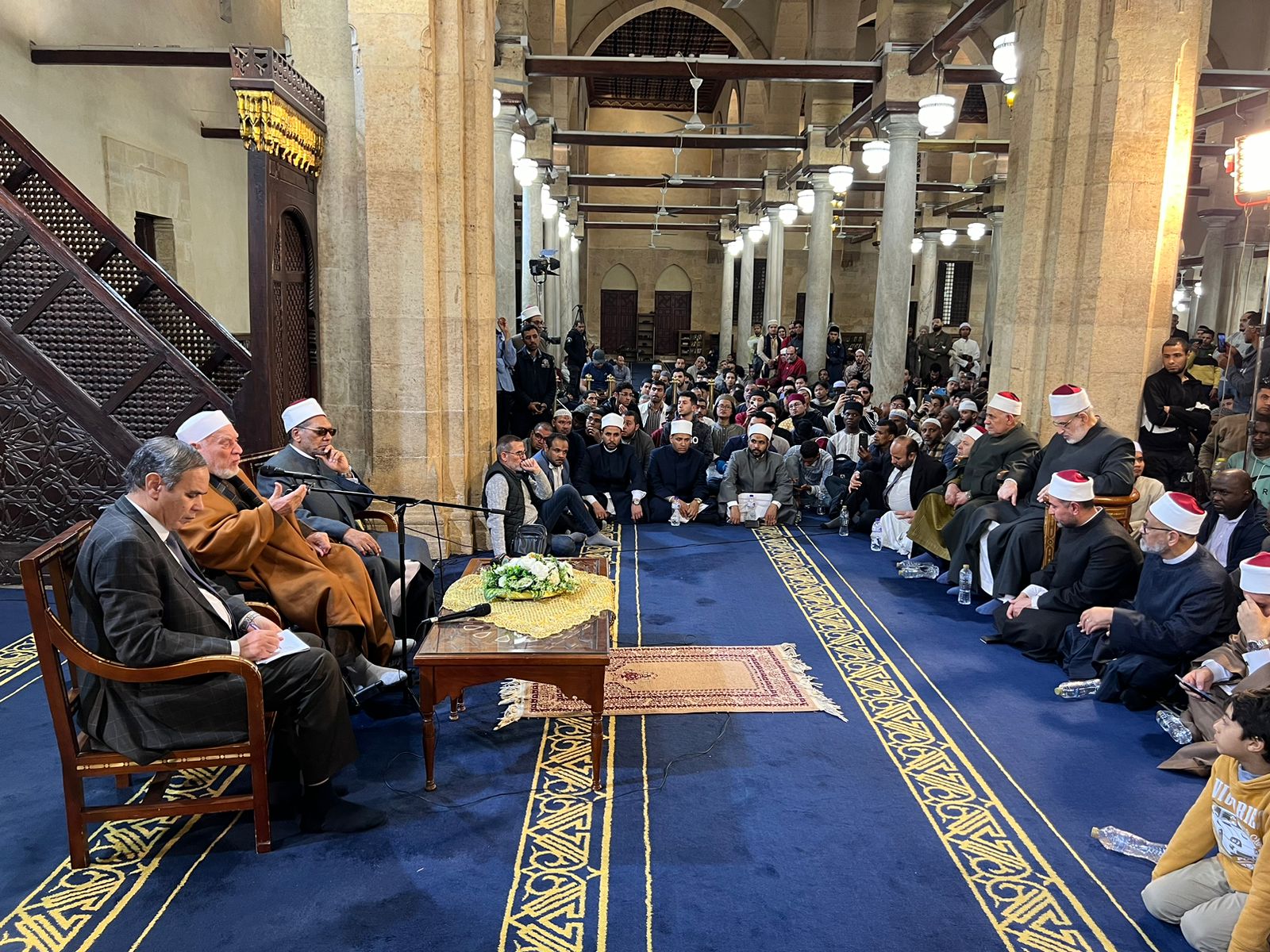 عقد الجامع الأزهر في الليلة الخامسة من شهر رمضان المبارك عقب صلاة التراويح «ملتقى الأزهر.. قضايا إسلامية»، بمشاركة الدكتور أحمد عمر هاشم، عضو هيئة كبار العلماء بالأزهر، والدكتور عبد الفتاح العواري، عميد كلية أصول الدين السابق وعضو مجمع البحوث الإسلامية، والدكتور عبد المنعم فؤاد، المشرف العام على الأنشطة العلمية بالرواق الأزهري، وذلك بحضور الدكتور محمد الضويني، وكيل الأزهر، ونخبة من علماء وقيادات الأزهر الشريف، والمصلين الذين حضروا إلى الجامع من شتى ربوع مصر ومن مختلف الدول العربية والإسلامية من المقيمين في مصر، وناقش الملتقى اليوم «الأمن الفكري.. رؤية قرآنية».