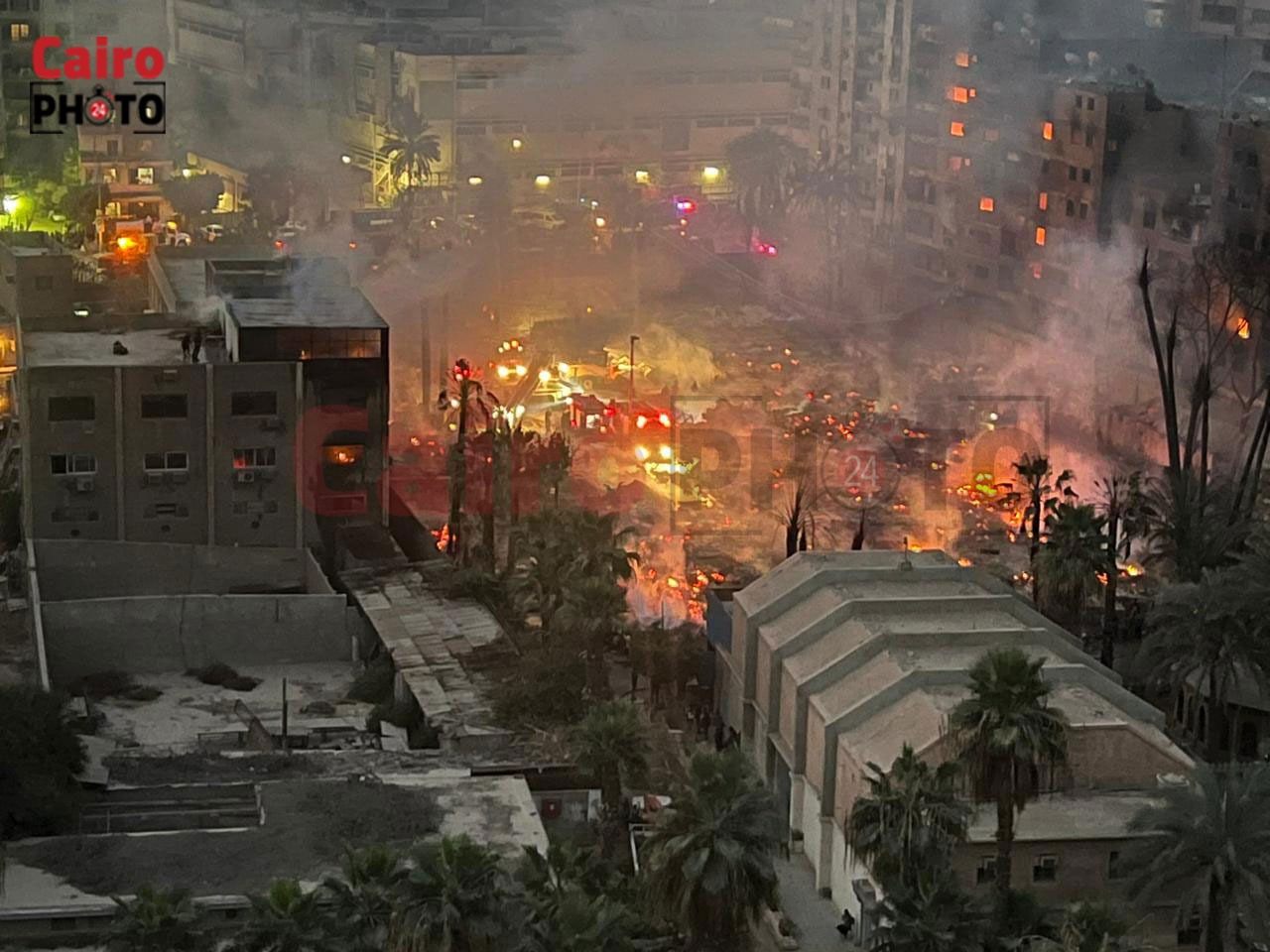 تشكيل لجنة هندسية لفحص الشقق المحترقة في حريق ستوديو الأهرام | صور