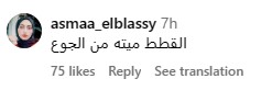 ومتابع آخر يكتب: الراحمون يرحمهم الله.. أحلى شعب وأعظم شعب ربنا يبارك فيكم وينصركم يا رب، ومتابع آخر: الله يطعمك من أكل الجنة.. وآخر: القطط ميتة من الجوع.