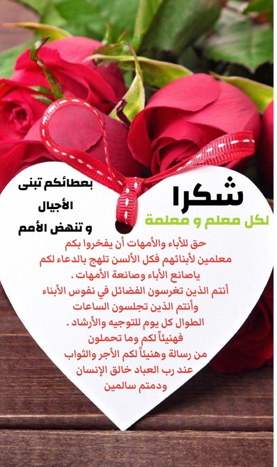 - لا أستطيع أن أعبر لك يا معلمي الفاضل عن مدى أهميتك في حياتي فأنت منبع العلم والمعرفة ومحارب الجهل بالنسبة لي تحياتي.