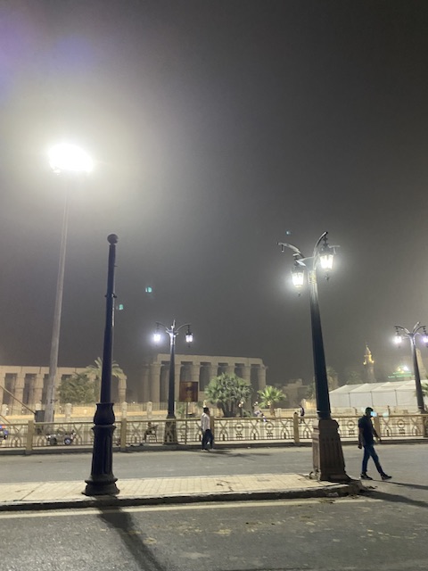 وظهر كورنيش الأقصر وميدان أبو الحجاج ومحيط معبد الأقصر وقد غلفته الأتربة والغبار، فيما ظهر الجانب الغربي لنيل الأقصر وكأنه اختفى تماما خلف سحب الغبار الكثيفة.