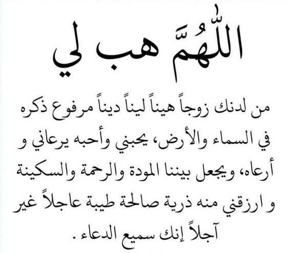 - ربّنا وتقبّل دعائي وارزقني يا ربّ زوجًا يخافك، وارزقني زوجًا يتّقيك ويكون لي ذخرا في الدنيا ومعينا لي في الآخرة.