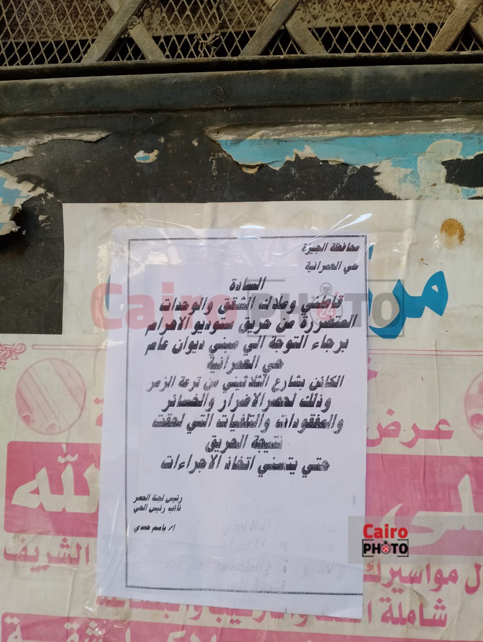 وقال حي العمرانية، في منشور له، قاطني وملاك الشقق والوحدات المتضررة من حريق استوديو الأهرام برجاء التوجه إلى مبنى ديوان عام حي العمرانية الكائن بشارع الثلاثيني من ترعة الزمر؛ وذلك لحصر الأضرار والخسائر والمفقودات والتلفيات التي لحقت نتيجة الحريق حتى يتسنى اتخاذ الإجراءات.