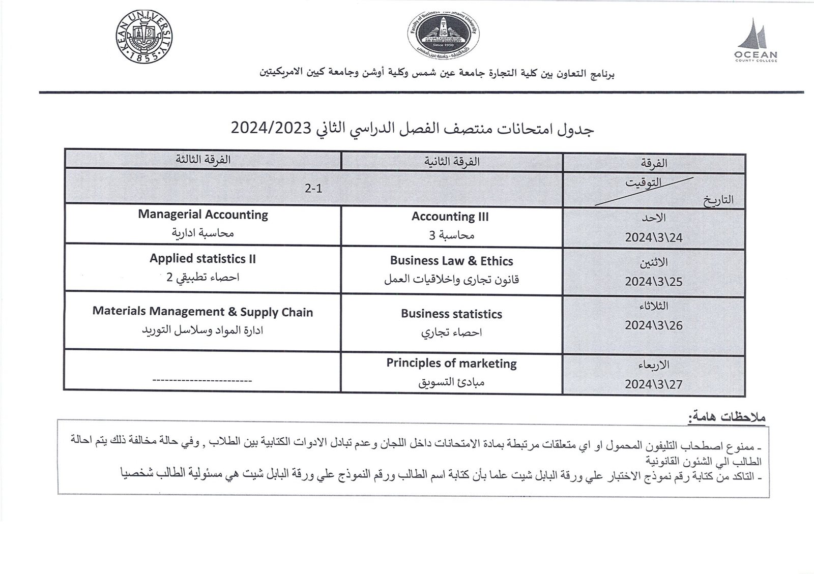 موعد بدء امتحانات الميدتيرم 2024 لطلاب برنامج كين بكلية تجارة عين شمس