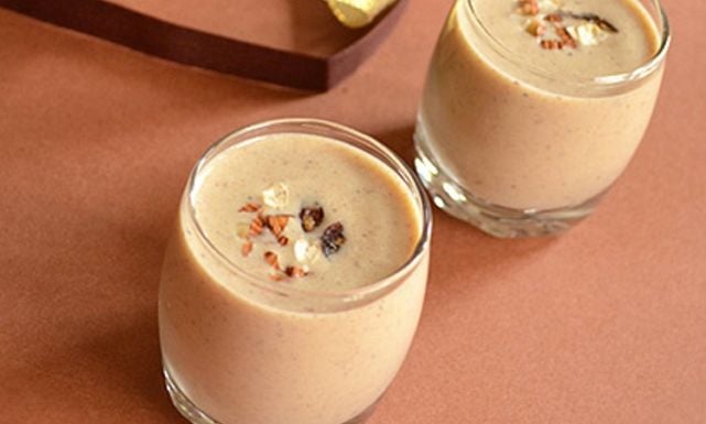 - انقعي 7 تمرات في نصف كوب ماء لمدة ساعتين، ثم ضعي البلح في الخلاط وضيفي إليه اللبن كامل الدسم المغلي سابقًا واضربيه جيدا ثم صفي العصير وتناوليه.