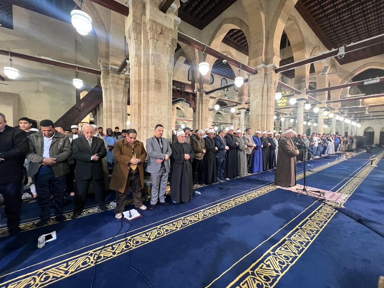 وتقدم المصلين الدكتور نظير عياد، الأمين العام لمجمع البحوث الإسلامية، والدكتور أتى خضر، رئيس قطاع مكتب شيخ الأزهر، والدكتور أحمد الشرقاوي، وكيل قطاع المعاهد الأزهرية، والدكتور عبد المنعم فؤاد، المشرف العام على الأنشطة العلمية بالجامع الأزهر، والدكتور هاني عودة، مدير عام الجامع الأزهر، وجمعٌ من علماء وقيادات الأزهر، وتقام صلاة العشاء الليلة من سورة هود برواية حفص عن عاصم، وتقام صلاة التراويح من سورة هود برواية ابن ذكوان عن ابن عامر الشامي، ورواية واين جماز عن الإمام أبي جعفر المدني، ورواية خلف العاشر.