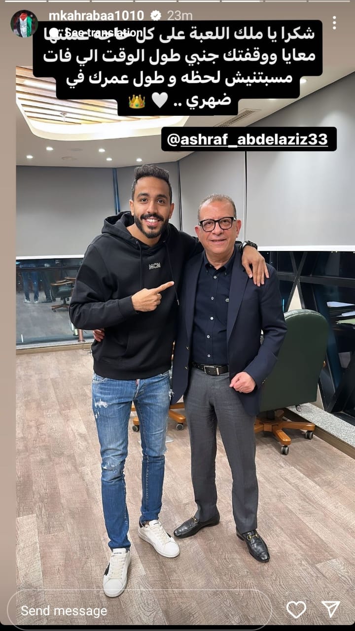 وكتب كهربا عبر حسابه الرسمي على إنستجرام: شكرا يا ملك اللعبة على كل حاجة عملتها معايا ووقفتك جنبي طول الوقت اللي فات ماسبتنيش لحظة، وطول عمرك في ضهري.