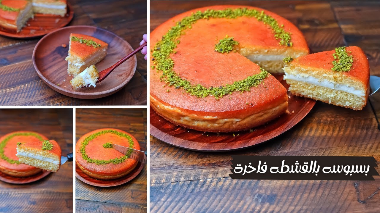 نبدأ أولًا بعرض طريقة عمل البسبوسة بالقشطة وجوز الهند وهي الأكثر انتشارًا وطلبًا، وتشبه في طعمها تلك التي تباع في المحلات الشهيرة، وتكون مكونات البسبوسة بالقشطة في هذه الوصفة مثالية وأصلية: