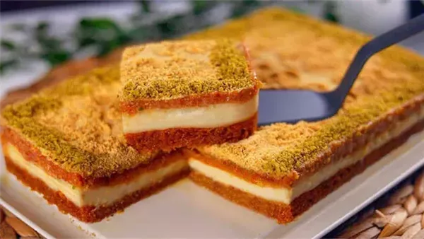 - يكون تقطيع البسبوسة مثل الكيك بعد أن تبرد تمامًا وليس وهي ساخنة فتتشقق.