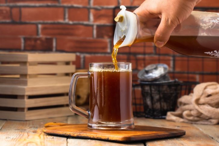 - صبي العرق سوس في وعاء آخر من مسافة مرتفعة لإحداث رغاوي.