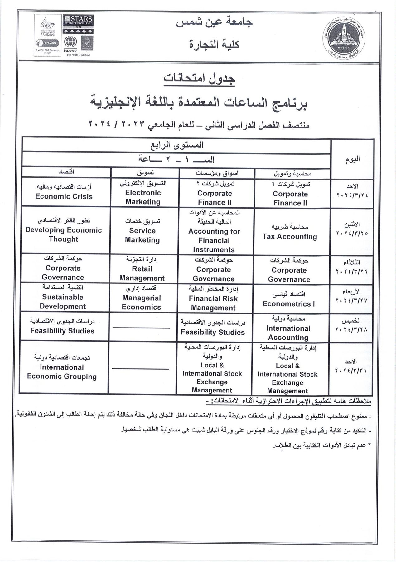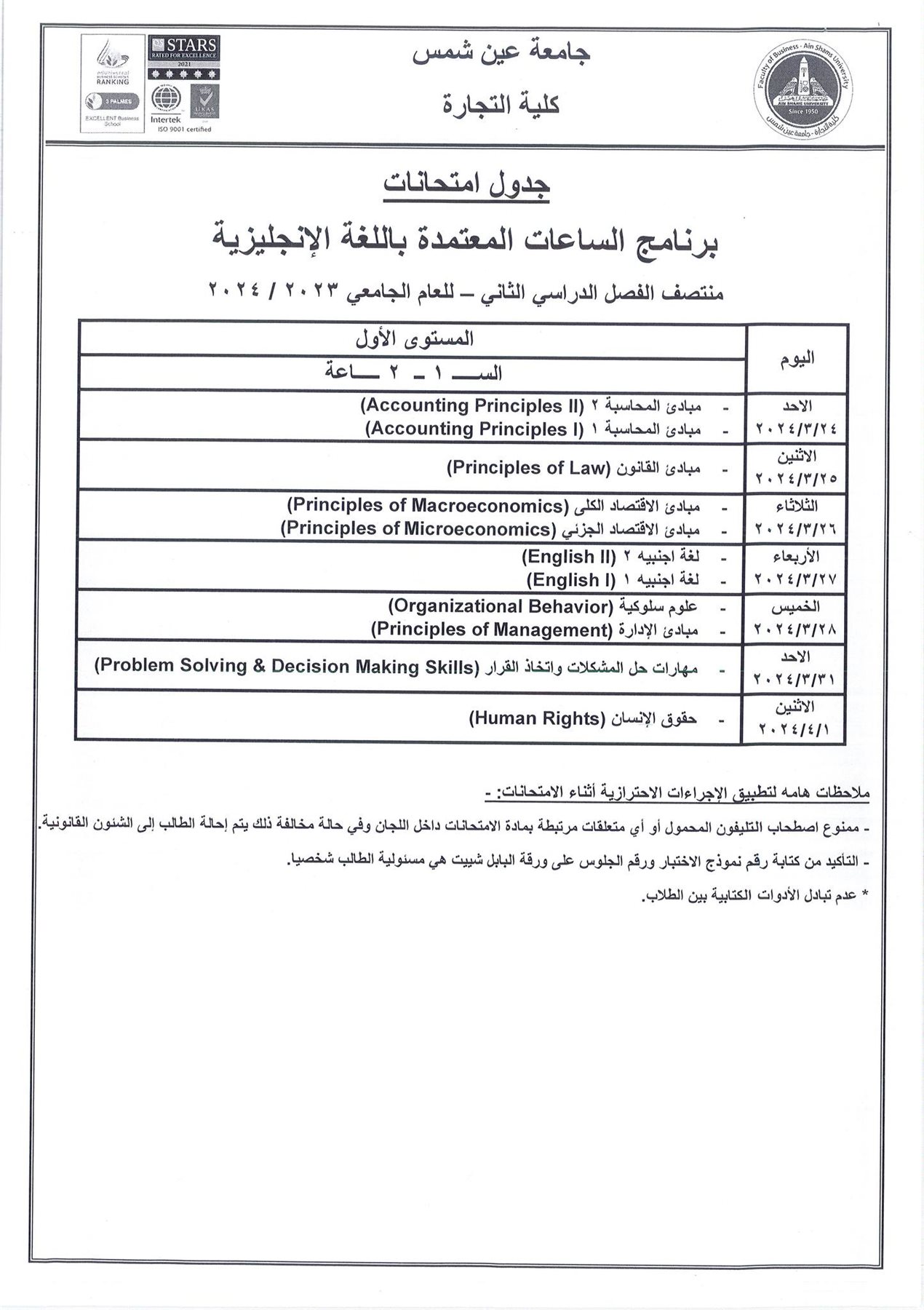 تبدأ غدًا.. ننشر جداول امتحانات الميدتيرم 2024 لطلاب تجارة عين شمس