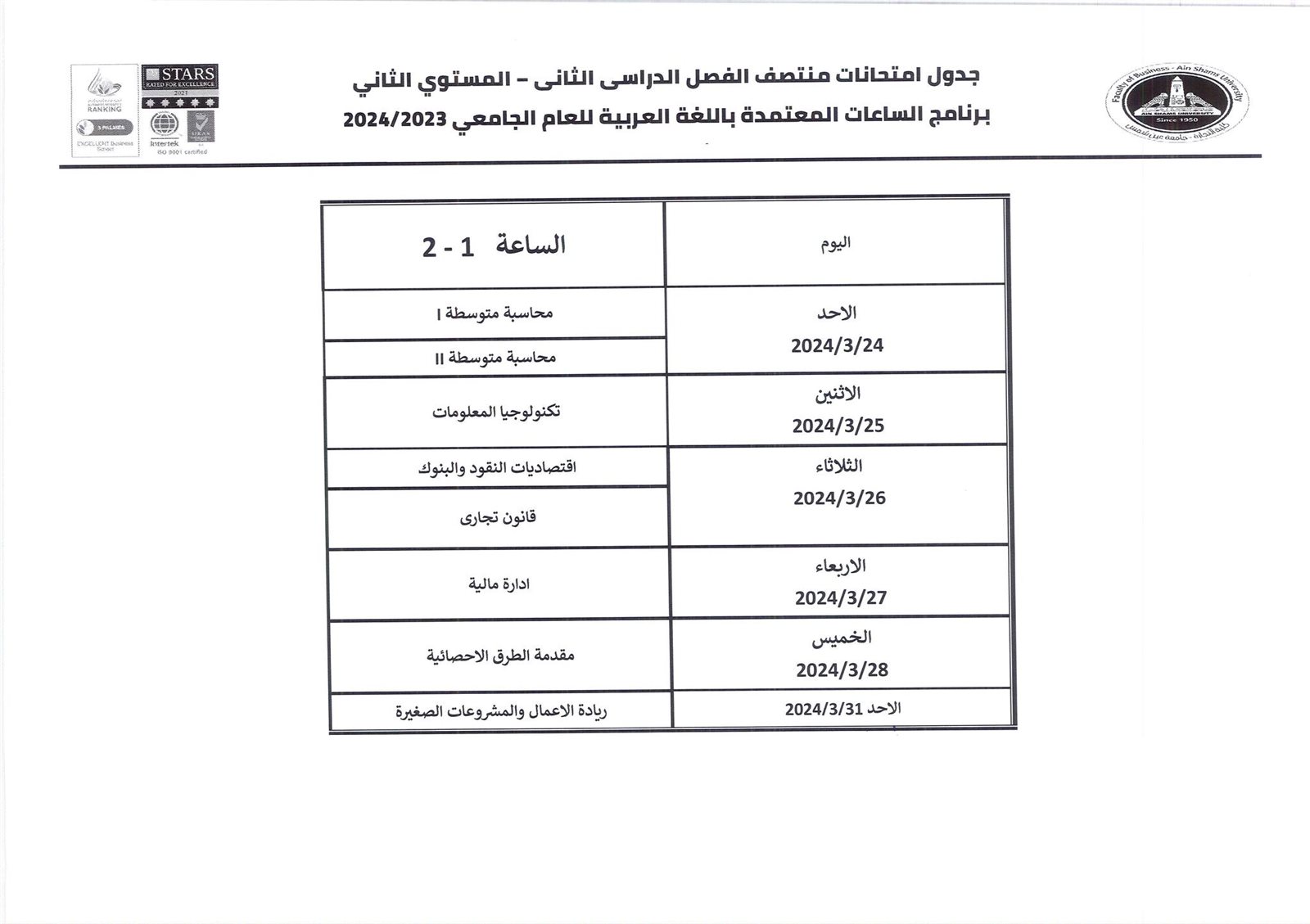 امتحانات الميدتيرم 2024 للفصل الدراسي الثاني