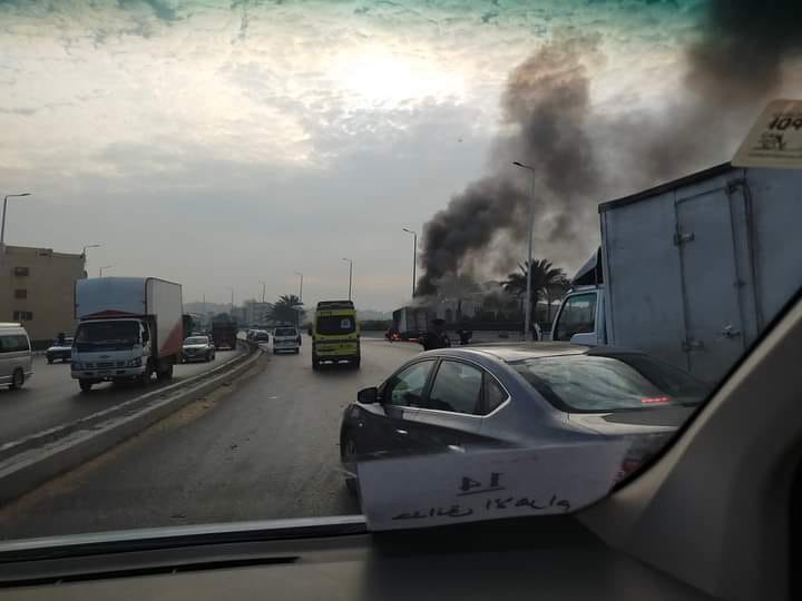 سيدة دخلت عكس.. مصرع شخصين في تصادم واحتراق سيارتين بالطريق الدائري بالجيزة