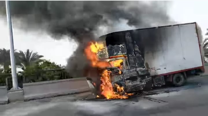 لقي شخصين مصرعهم إثر حادث تصادم سيارة نقل مع ملاكي أعلى الطريق الدائري اتجاه المريوطية بمحافظة الجيزة، مما أدى إلى اشتعال السيارتين ووفاة ما بداخلهم.