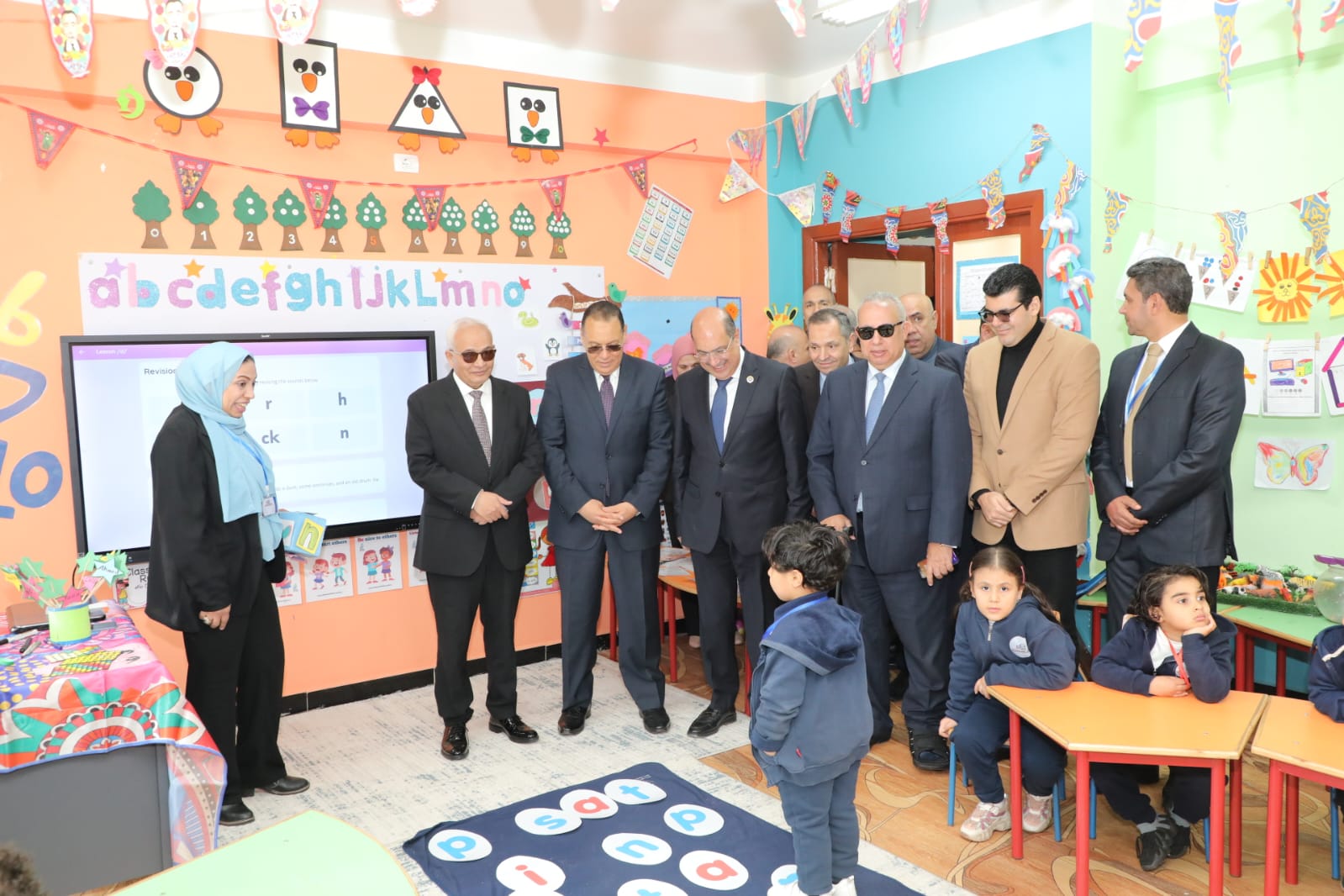 وتفقد الدكتور رضا حجازي والدكتور ممدوح غراب مدرسة فاقوس الرسمية للغات 2، والتى تضم 21 فصلًا من الصف الأول رياض أطفال وحتى الصف الثاني الابتدائي، وتفقدا قاعتي رياض الأطفال، وشاهدا حصص التعرف على الألوان والأشكال، وكذلك حصة للتربية الرياضية، وتابعا انتظام العملية التعليمية داخل المدرسة والمستوى الدراسي للطلاب ومدى استفادتهم من المناهج التعليمية.