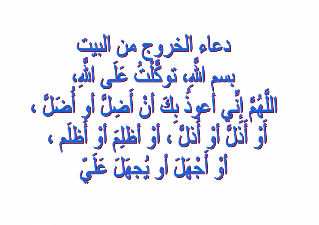 وهذا الدعاء يسن عند الخروج من باب المنزل إذ يجعل المسلم في وقاية من وساوس الشيطان له بالمعصية والتربص له ليحزنه ويسبب له الضيق.