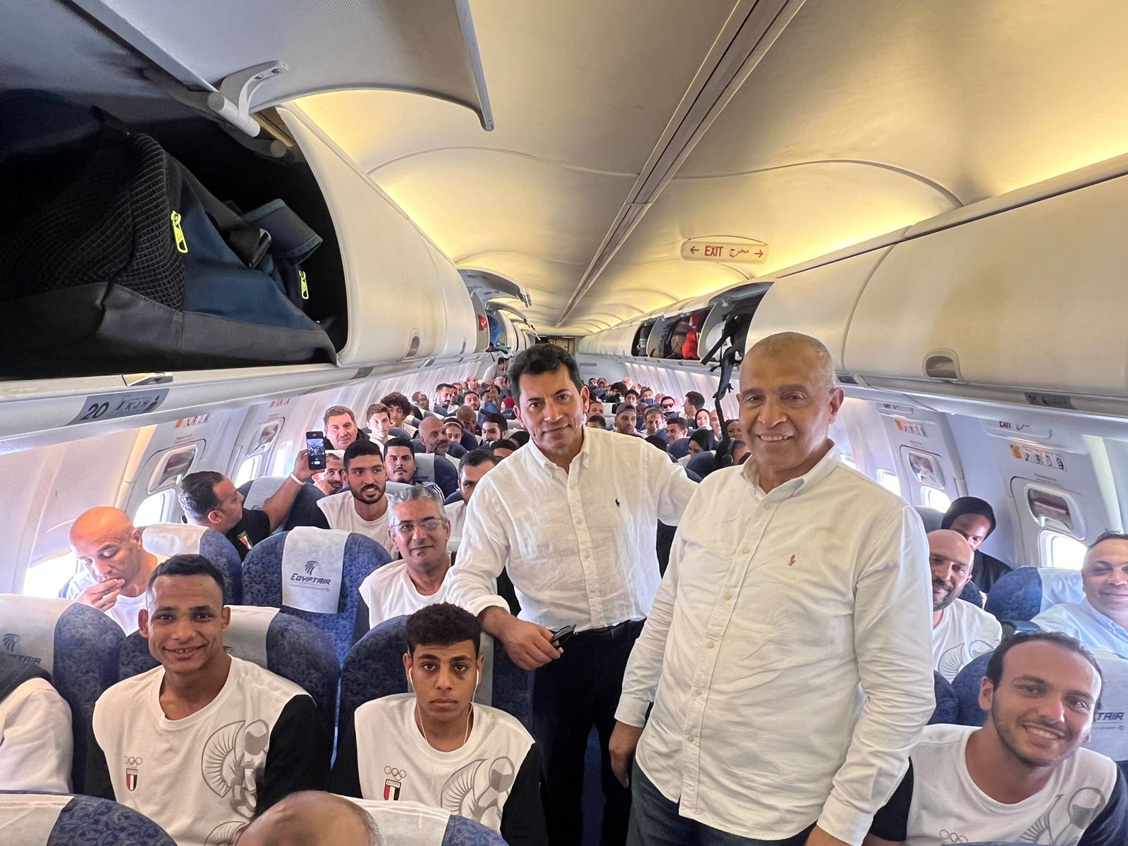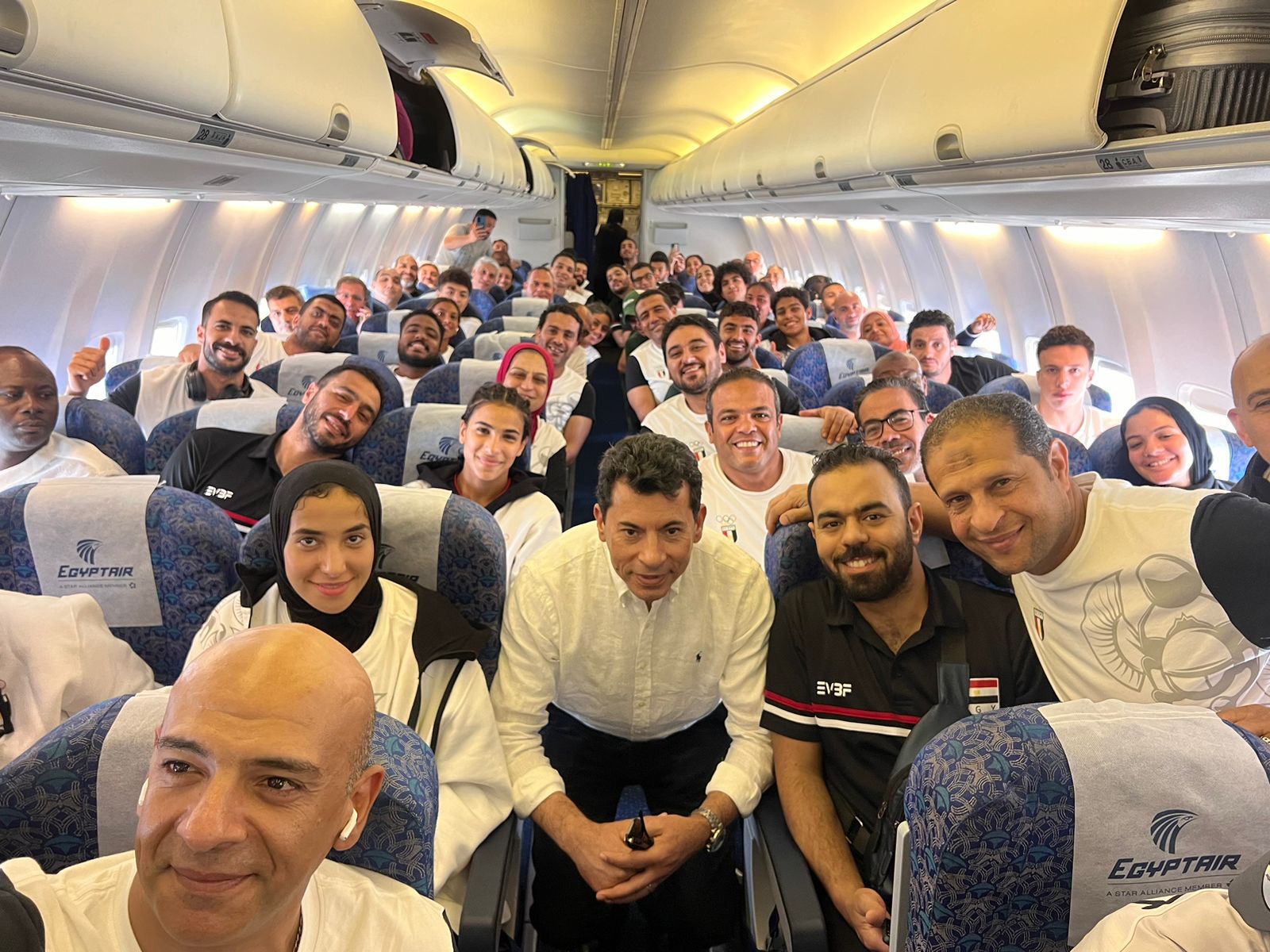 وخلال استقلال الطائرة مع اللاعبين، دارت أحاديث ونقاشات ودية للغاية بين وزير الشباب والرياضة مع اللاعبين ورؤساء الاتحادات والأطقم الطبية والإدارية، مؤكدًا على تنفيذ توجيهات الرئيس عبدالفتاح السيسي رئيس الجمهورية، بدعم ومساندة الرياضيين، فالمنظومة الرياضية تشهد العديد من النجاحات بفضل دعم القيادة السياسية، وحرص لاعبي مصر على تقديم أفضل ما لديهم من أداء والذي يُتوج بتحقيق مختلف الألقاب.