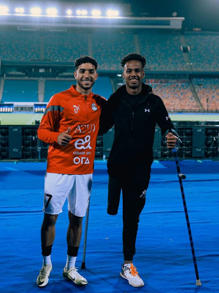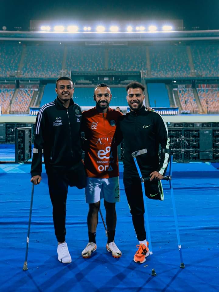 كما حرص حسام حسن المدير الفني لمنتخب مصر بالإضافة إلى بعض لاعبي المنتخب أبرزهم مصطفى محمد وعمر مرموش ومحمد مجدي قفشة ومحمود حسن تريزيجيه على التقاط الصور التذكارية مع لاعبي فريق الساق الواحدة.
