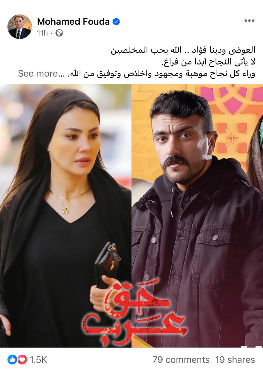 وكتب الإعلامي محمد فودة على صفحته الرسمية بموقع التواصل الاجتماعي فيسبوك قائلا: النجاح الأسطورى الذى حققه مسلسل حق عرب جعله قبلة المشاهدين، وتحول نجومه إلى أبطال الشارع المصرى، وعلى رأسهم النجم المتألق صاحب البريق المتجدد أحمد العوضى والنجمة الساطعة دينا فؤاد، اللذان كان لهما الدور المحورى فى النجاح العظيم والتألق المستمر، الذى جعل المشاهدين ينتظرون حلقات المسلسل بحب وشغف وترقب.